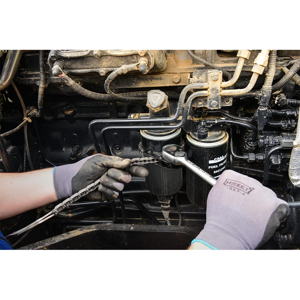- Deschiderea lantului filtrului de ulei permite utilizarea si in puncte care, din cauza modului de constructie, sunt greu accesibile