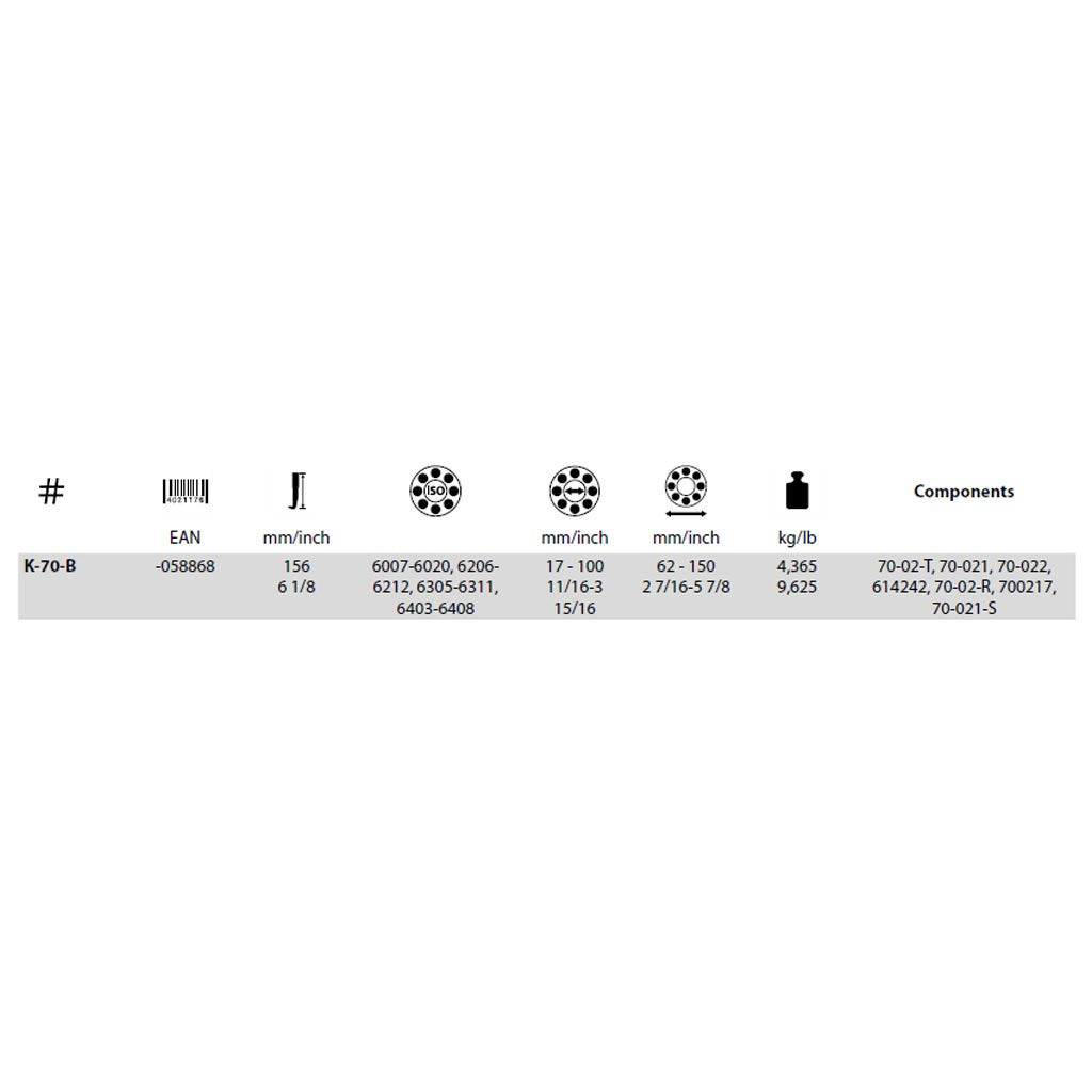 Set extractoare pentru rulmenti cu bile „PULLPO” Ø 17-100 mm, K-70-B