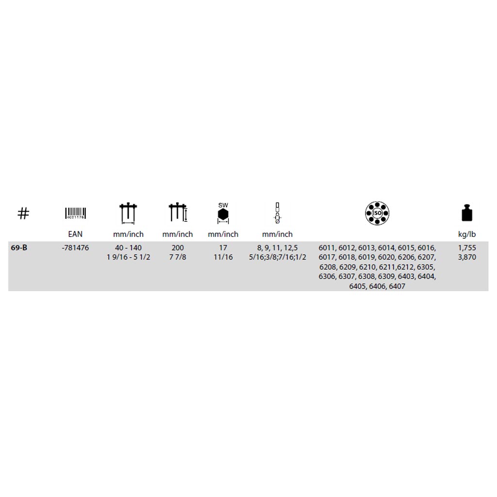 • Setul de 12 extractoare pentru rulmenti cu bile 69-B este utilizat pentru extragerea rulmentilor cu bile de toate tipurile care sunt asezati intr-o carcasa si/sau pe un arbore, in mestesuguri, industrie si ateliere